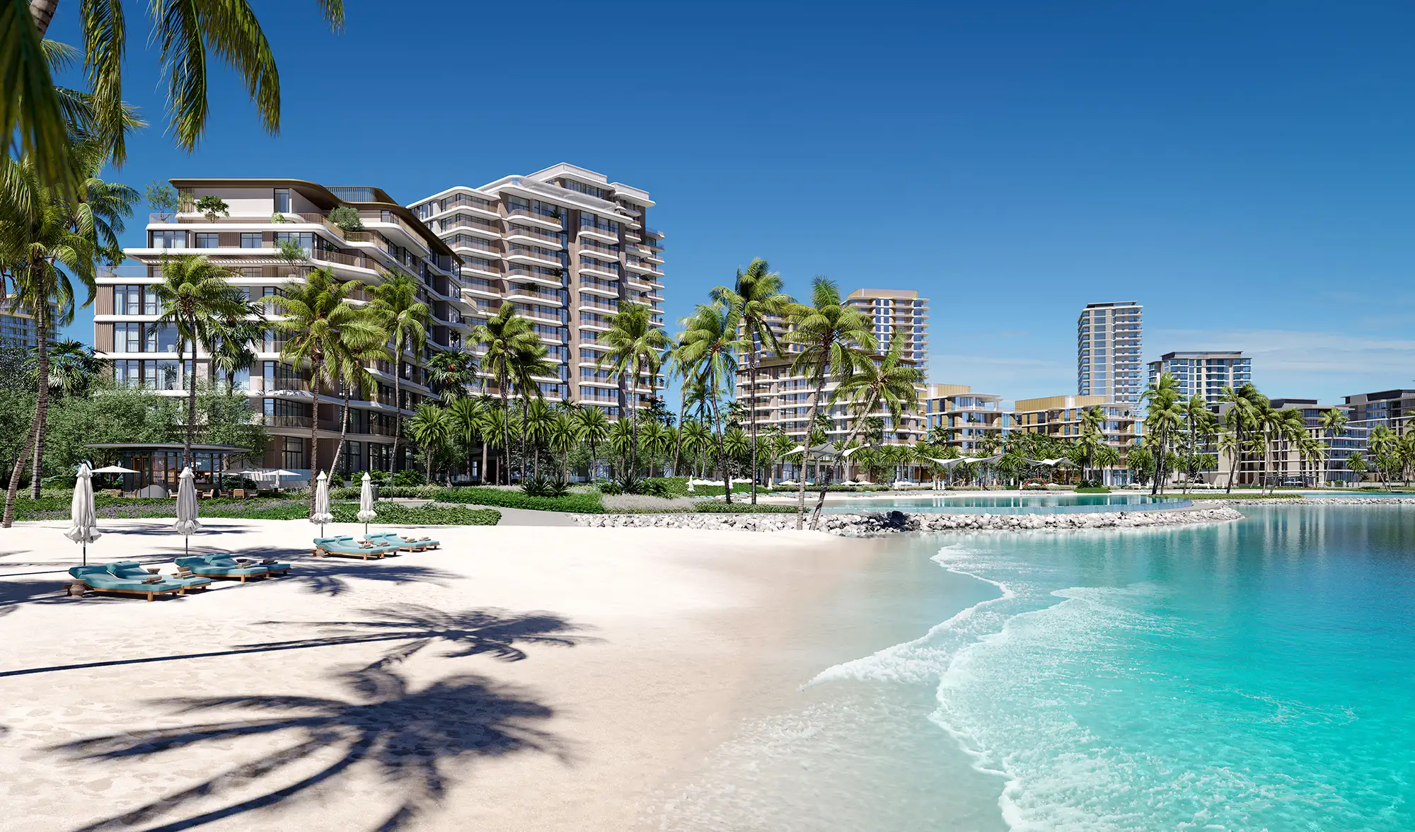 Private Beaches & Boardwalks: Enjoy direct access to pristine white-sand beaches just steps from your door, along with scenic waterfront promenades. Stroll or jog along the beach boardwalk, or simply unwind to the panoramic ocean views – a daily privilege for Bay Collective residents.